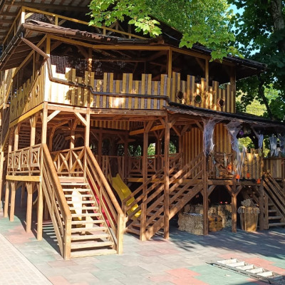 Наш парк не стоит на месте! Мы отреставрировали и усовершенствовали деревянную горку лабиринт.