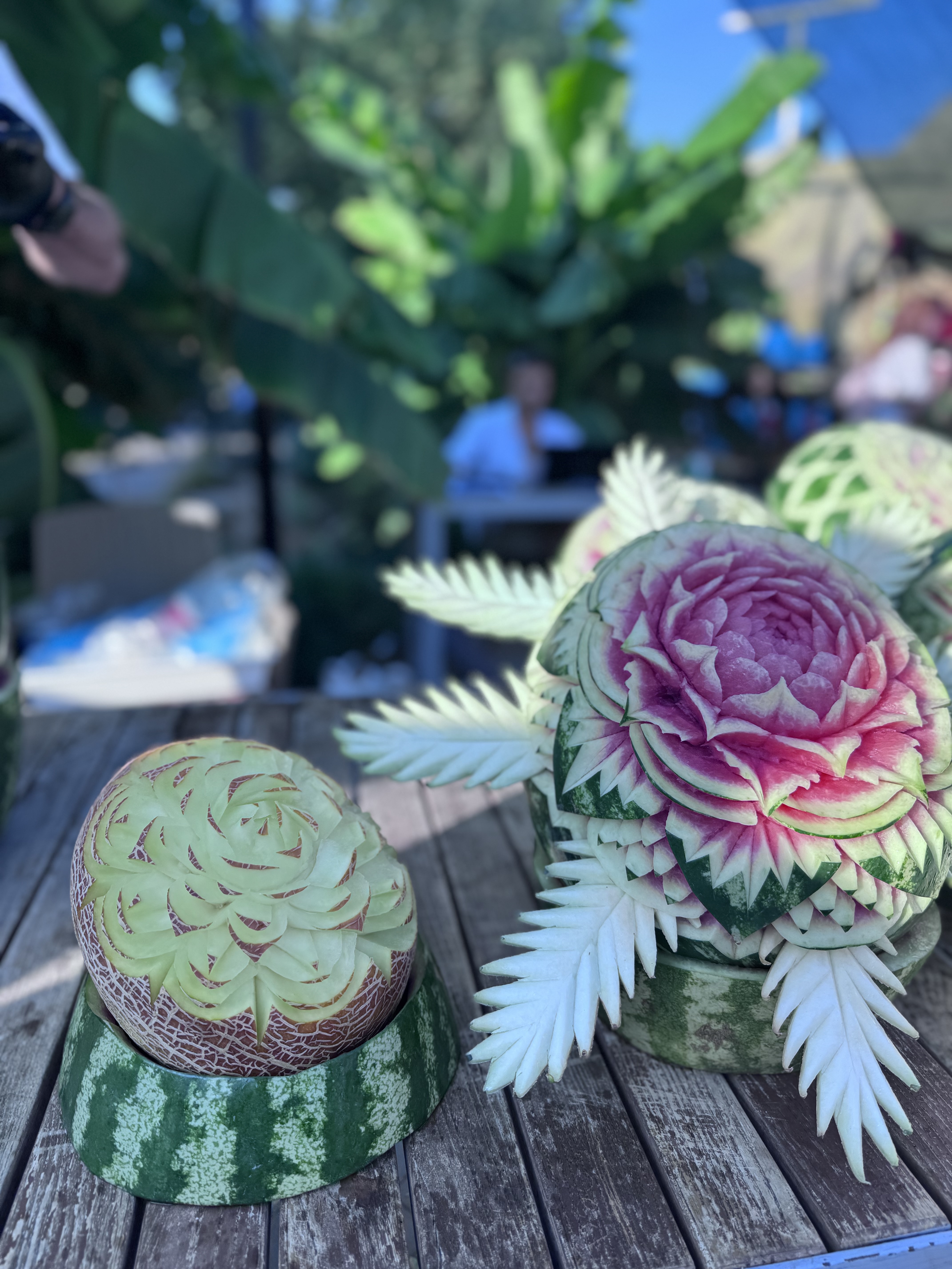 Мастера по карлингу вырезали 28 различных фигур из арбузов и дынь. Каждая фигура — это настоящее произведение искусства, требующее невероятной точности и мастерства. От забавных зверушек до сложных геометрических узоров, арбузное искусство поражает воображение и дарит радость посетителям. Мастера-карверы трудились не покладая рук, чтобы создать эту впечатляющую выставку, превращая обычные арбузы и дыни в шедевры.