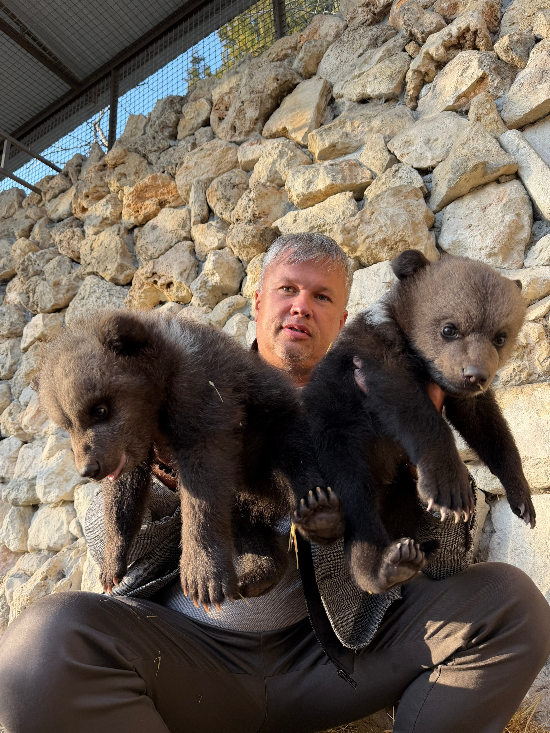 «Сейчас заботу о медвежатах взяли на себя сотрудники парка. Мама-медведица передала им "почетную обязанность" по кормлению», – добавил он.